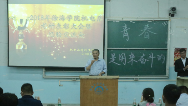 会上,金蕊老师首先宣读了《关于表彰机电系2018届“考研先进个人”的通知》,授予机电系考取硕士研究生的52名同学“考研先进个人”荣誉称号并予以表彰,号召广大同学以他们为榜样,树立远大目标,为自己的“考研梦”不断奋斗,坚持不懈。