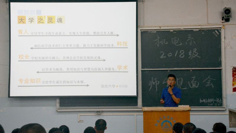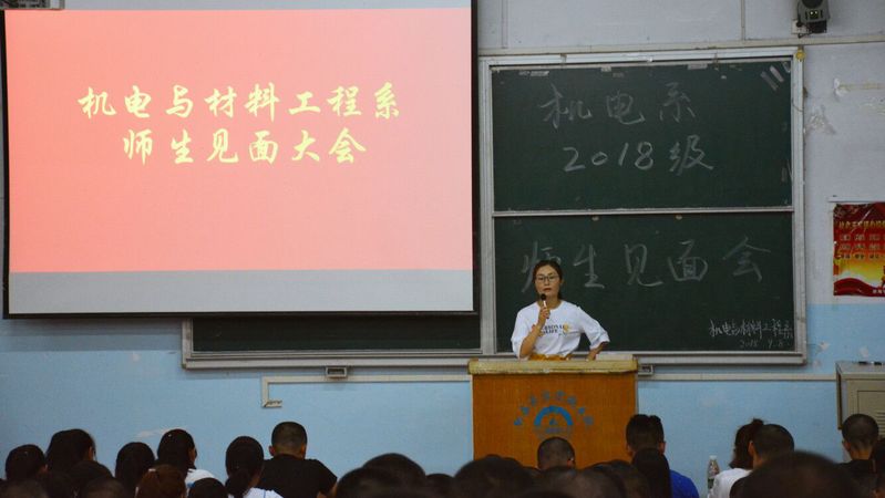 为了使新生更好更快的了解学院和我系的基本情况,机电系于9月8日8:30在一南101教室隆重召开机电系2018级新生见面大会。系学工办主任金蕊老师、18级辅导员周雨曦老师、张琪老师出席本次大会,各班新生班主任及机电系18级全体同学参加本次会议。