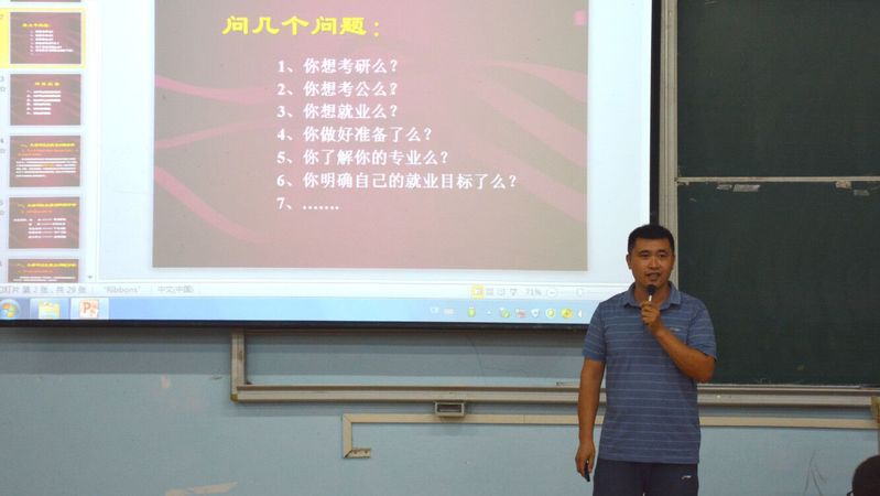 会议伊始,黄喜刚老师分析了大学生就业困难的成因,向同学们详细讲述了当前的就业形势以及大家目前在就业准备过程中遇到的问题。同时,黄喜刚老师希望就业者能够通过网络搜索功能等就业途径实现就业。他分析了创业者创业成败的原因,强调了只有把握市场机会,深入了解创业市场才能成功。黄喜刚老师还结合多年就业工作经验,为打算就业的人提出应在工作中磨练自己的建议,表明了只有在工作中才能不断成长,不断进步。最后,毛老师为大家讲述了自己的就业经历,希望同学们摆正就业态度,争取早日找到适合自己的工作。