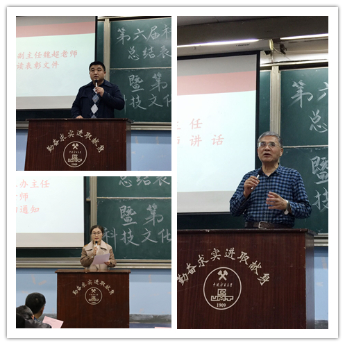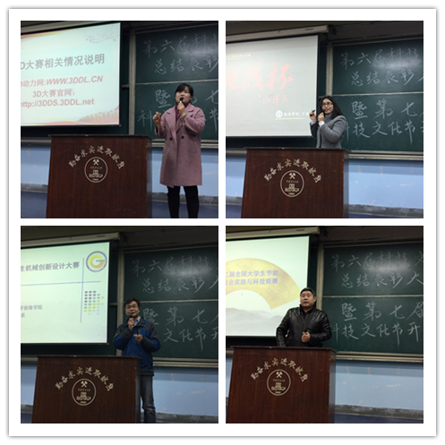 随后,魏超老师宣读表彰文件,并举行了颁奖仪式。颁奖仪式结束后,金蕊老师宣读了《关于举办机电系第七届科技文化节的通知》。紧接着,王水林、张辉、仝军令、丁艳四位老师分别就“3D大赛”、“节能减排大赛”、“大学生机械创新设计大赛”、“挑战杯”大赛的赛事简介、组织报名、竞赛指导等事项进行了具体介绍。
