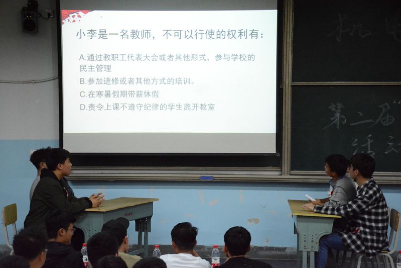 经过初赛的激烈角逐,进入决赛的六支队伍,以话剧表演的方式向评委展示自己所了解的权益维护方面的知识内容,随后进行答辩环节,针对评委和观众提出的相关问题进行答辩。选手们向同学们展示了大学生维权的真实案例并提出了很多实用的解决方案,希望大家引以为戒,防止自己的权益受到侵犯,如有不慎,要知道如何捍卫自己的权益。最后进行了维权知识抢答环节。