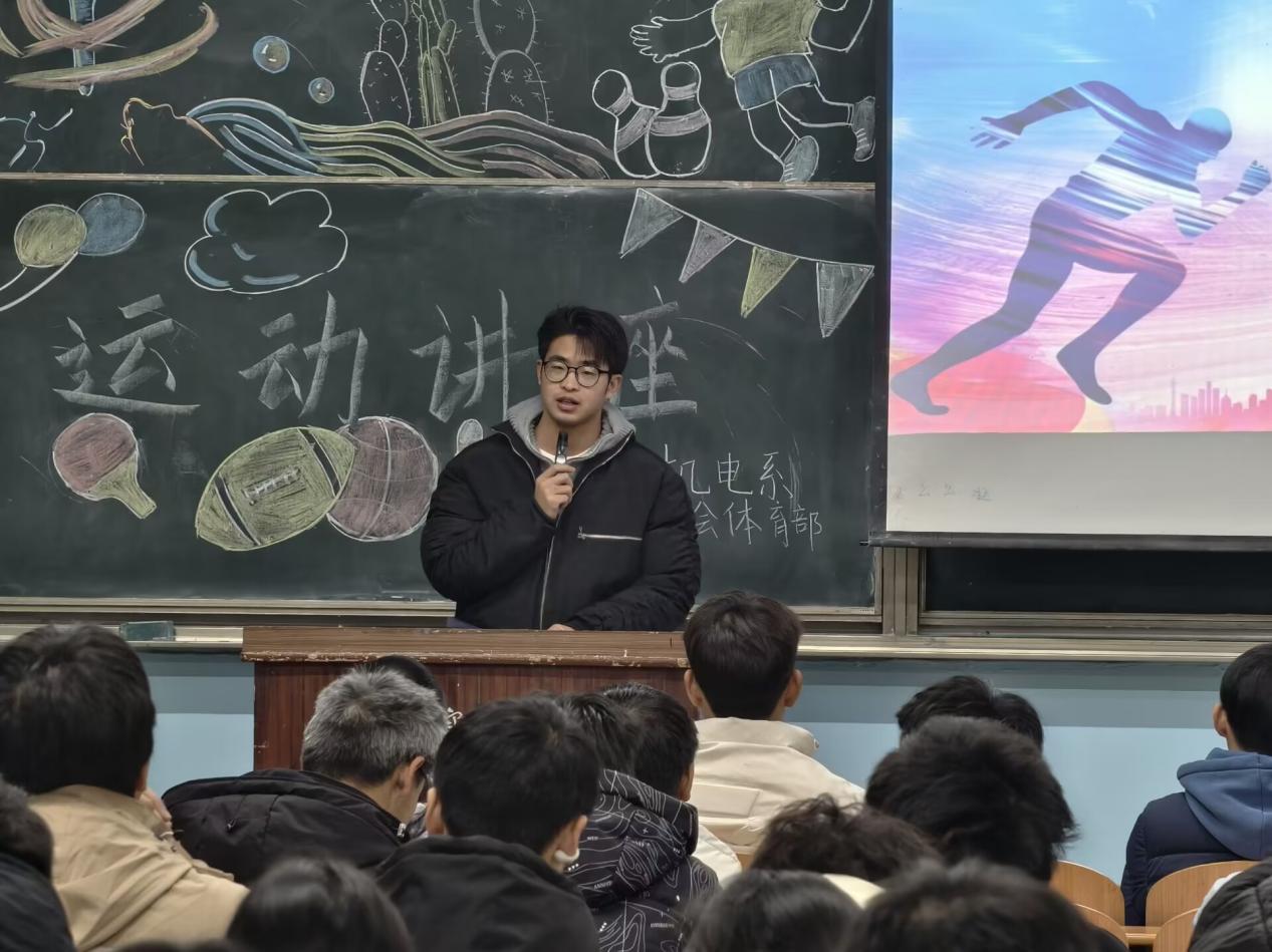 为了凝心聚力更好地迎接春季运动会,我系学生会体育部于12月15日在主北三举办了运动讲座,机电系团总支外联部部长郭发文,团总支学生副书记王虎,足球社社长李奇出席。
