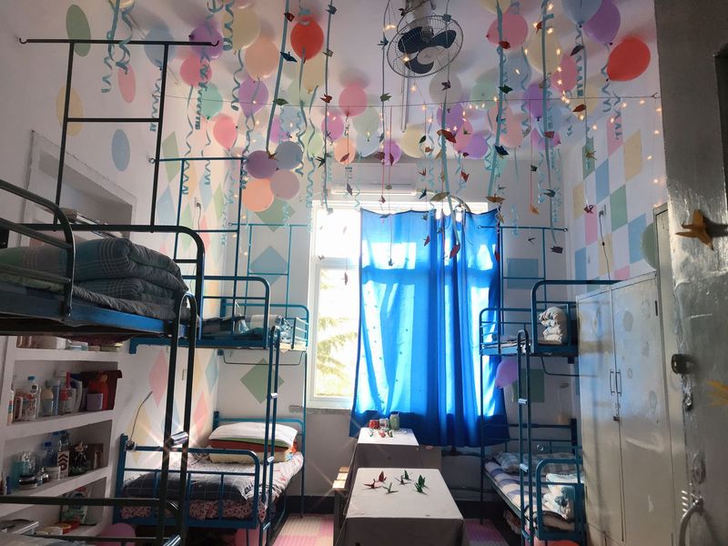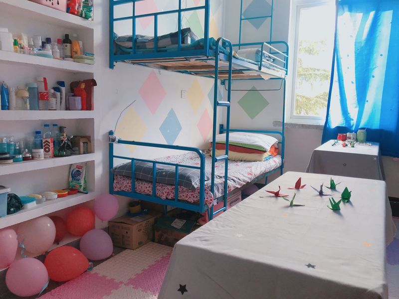 活动评比内容包括宿舍主题、宿舍内部装饰及宿舍卫生三部分,评委们根据标准对各宿舍各部分打分,宿舍各式各样的设计主题让人目不暇接,朴素大方、创意温馨成为本次宿舍装扮的主旋律。宿舍整齐的内务得到了评委们的充分肯定,同学们充分发挥自己的设计才能,将自己的宿舍装扮的温馨而有魅力。绘画、书法、剪纸等手工装饰品让评委眼前一亮,多彩的气球、温馨的贴纸、励志的文字,都成为了每个宿舍独特的风景。