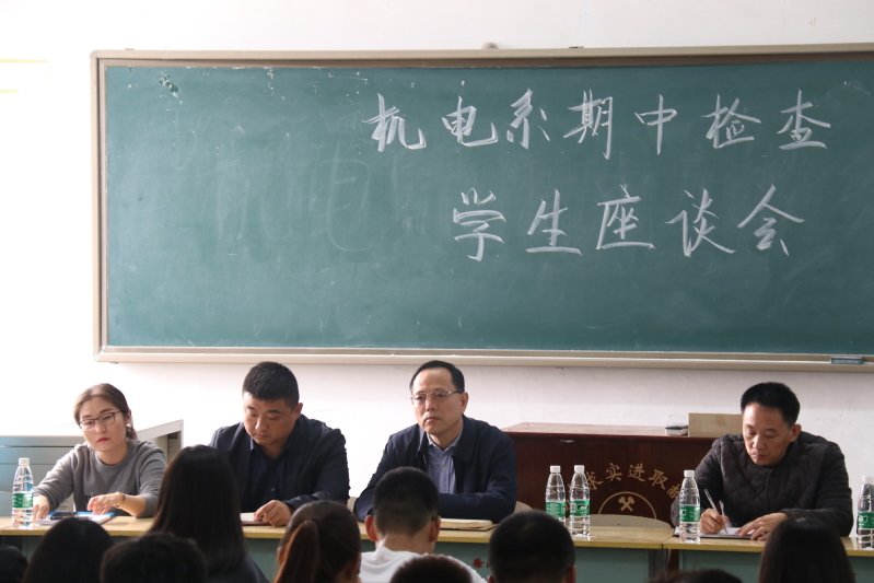 为加强学校师德师风建设,营造良好教风学风,改进教学服务工作,提高教学管理总体水平。10月30日13:00,机电系于主楼506召开了期中教学检查座谈会。中国矿业大学徐海学院副院长应鹏展,机电系副主任魏超老师,机电系学工办主任金蕊老师,机电系各年级辅导员老师以及学院各部门负责老师莅临此次座谈会。各班学生代表参加本次会议。