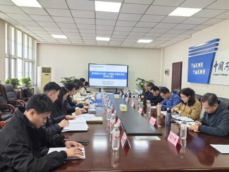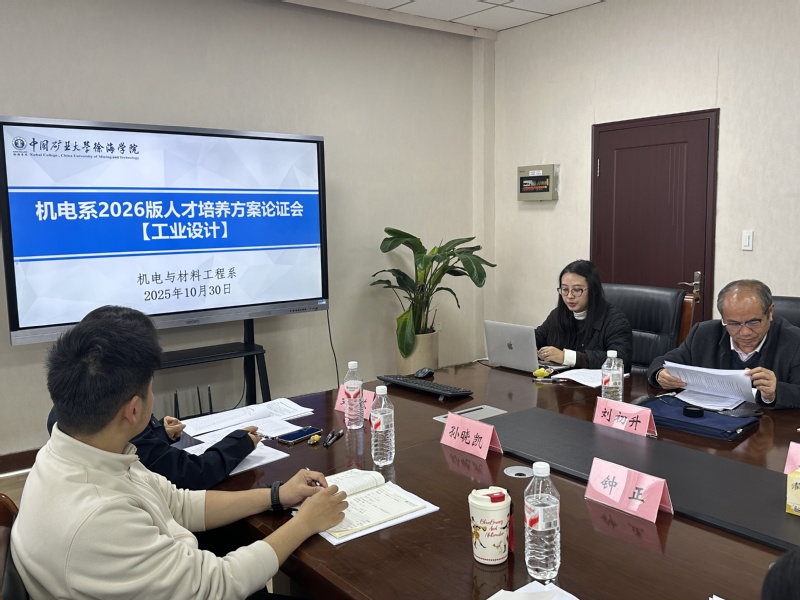 10月30日、31日下午,机电系在徐海学院会议室组织召开了2026版本科人才培养方案系部论证会。论证会邀请江苏师范大学杨道龙教授,中国矿业大学孙智教授、刘新华教授、牛继南教授、宗威副教授、周忠宁副教授等高校专家莅临指导,徐海学院教学督导应鹏展教授、刘初升教授,机电系主任丁艳、副主任仝军令,学工、教务老师,各专业负责人助理、教师代表和学生代表参加会议,共同为培养方案优化把脉献策。会议由丁艳主持。