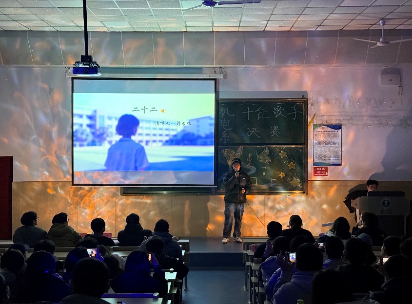 活动在徐培演唱《有何不可》中拉开帷幕,明快旋律点燃现场氛围。随后多位选手依次登台,以不同风格的演唱展现风采;中场休息时,陈瑾怡献唱《我乘着风飞过来》,空灵歌声带领观众沉浸音乐之境。稍作休整后,另有多位选手继续演唱,呈现多样音乐风格。紧张的评分环节中,王旭带来《像风一样》,为现场增添潇洒韵味。最后,主持人揭晓本次比赛结果:获得本次“机电系十佳歌手”前三名的分别是王仙琦,李博文,胡馨叶,在全场经久不息的掌声中,活动圆满落下帷幕。