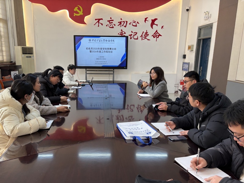 为全面总结年度学科竞赛与创新活动成果,科学部署新一年竞赛工作,1月8日下午,机电系在主楼104召开了2025年度学科竞赛总结暨2026年度竞赛工作规划会议。机电系主任丁艳、大创中心负责教师王桂卿,以及各学科竞赛负责教师参加会议。会议由丁艳主持。