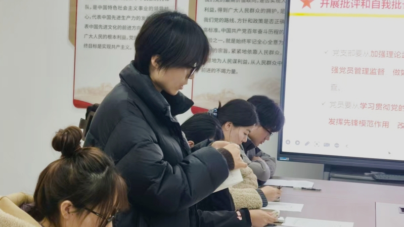 最后,刘澜强调,要以此次查摆的问题为契机,杜绝整改流于形式,制定切实可行的整改方案,深挖问题根源、狠抓整改落实。她要求,全体党员要主动参与支部活动,充分发挥先锋模范作用;作为学生党员,要牢记学生本分,端正学习态度、勤学善思,共同营造支部优良学习氛围。