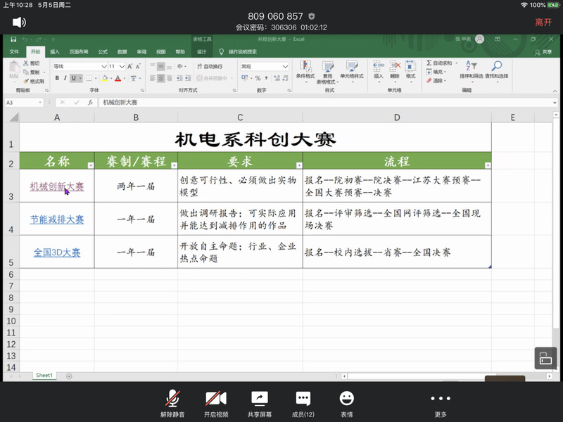 我系于5月5日上午依托腾讯会议进行大创中心主任和部长的答辩会议。出席本次会议的评委有负责学科竞赛的各位老师和相关辅导员老师,会议由魏超老师主持。
