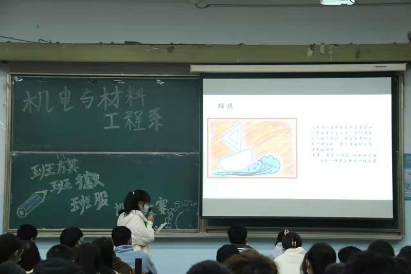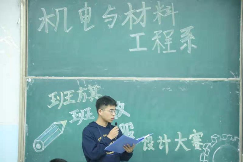 比赛开始,首先由各班依次上台进行ppt展示,由每位选手对其班级设计的班旗、班徽、班服进行设计理念简述。然后由评委们为参赛班级进行打分,统计票数后进行排名。最后由主持人宣读获奖名单,并由纪检部进行公证。
